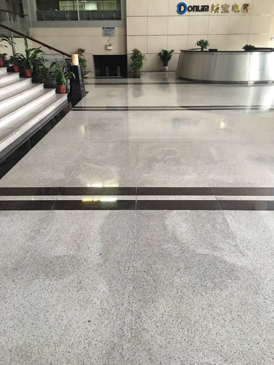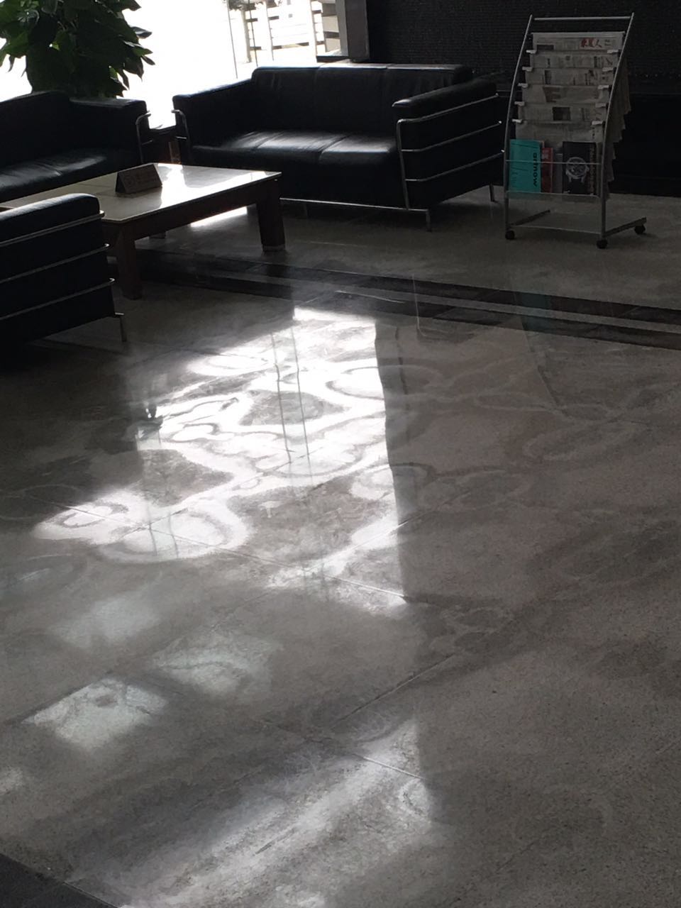 佛山市恒美清潔服務(wù)有限公司經(jīng)過現(xiàn)場勘查 發(fā)現(xiàn)佛山市新寶電器有限公司大堂石材翻新工程主要存在以下問題: